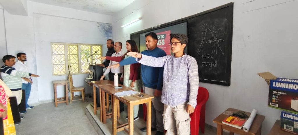 आज दिनांक 15 अक्टूबर को राजकीय महाविद्यालय अगरोड़ा टिहरी में प्रभारी प्राचार्य डॉ अजय कुमार की अध्यक्षता में एंटी ड्रग समिति द्वारा शपथ ग्रहण कार्यक्रम आयोजित किया गया। कार्यक्रम सह प्रभारी डॉ. योगेन्द्र सिंह गुसाईं ने किसी भी प्रकार का नशे से दूर रहने और नशे से दूर रहने के लिए अन्य लोगों को भी जागरूक करने संबंधी एंटी ड्रग शपथ दिलवाई एवं बताया कि किसी भी ग़लत प्रकार की संगति का असर हमारे जीवन पर नकारात्मक प्रभाव डाल सकती है