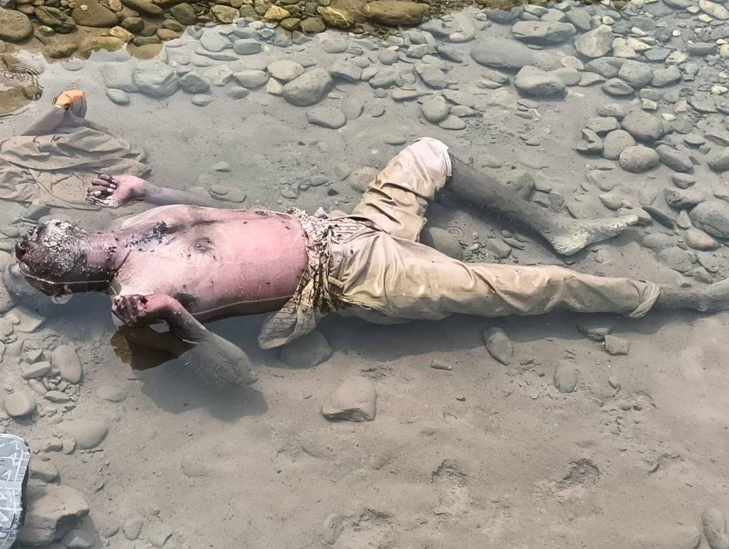 आसन नदी में नदी किनारे एक अज्ञात व्यक्ति का शव पानी में पड़ा मिला।
