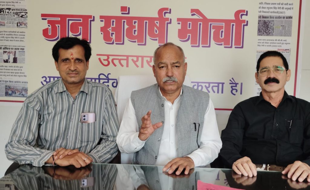 विकासनगर– जन संघर्ष मोर्चा अध्यक्ष एवं जीएमवीएन के पूर्व उपाध्यक्ष रघुनाथ सिंह नेगी ने पत्रकारों से वार्ता करते हुए कहा कि प्रदेश के गोल्डन कार्ड धारक कर्मचारी/अधिकारी अपना इलाज कराने के लिए दर-दर की ठोकरें खाने को मजबूर हैं, लेकिन सत्ता के नशे में चूर सरकार को इन कर्मचारियों की पीड़ा दिखाई/ सुनाई नहीं देती |अधिकांश अस्पताल इन कार्डों पर इलाज करने से मना कर रहे हैं, क्योंकि सरकार अब तक इन अस्पतालों को भुगतान नही कर पायी ।हर मोर्चे पर विफल सरकार को सिर्फ माफियाओं के हक – हकूकों की चिंता है. मोर्चा शीघ्र ही कर्मचारियों के हितों को लेकर आंदोलन करेगा ।पत्रकार वार्ता में- मोर्चा महासचिव आकाश पंवार व प्रवीण शर्मा पिन्नी मौजूद थे ।