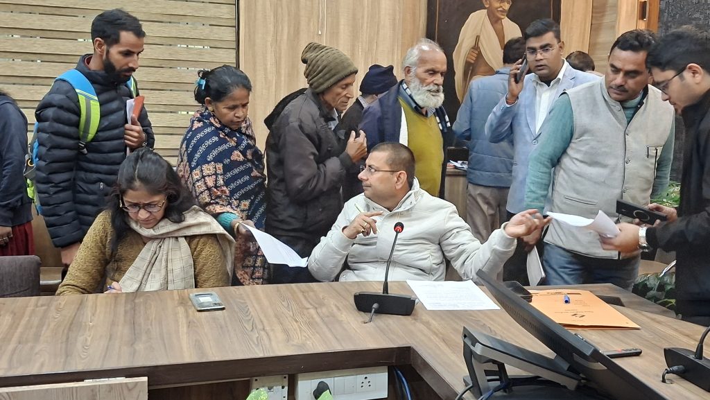 फूलेत-क्यारा मोटर मार्ग पर डामरीकरण की मांग को लेकर पीएमजीएसवाई के अधिशासी अभियंता को त्वरित कार्यवाही करने को कहा गया। मधुर विहार में सीवर लाइन न होने की शिकायत पर पेयजल निगम को निरीक्षण करने को कहा गया। चन्द्रबनी वार्ड के अंतर्गत कैलाशपुर मुख्य मार्ग पर शिव मंदिर के पास क्षतिग्रस्त नालियों के निर्माण हेतु लोनिवि को निर्देशित किया गया। नौगांव में पानी की लाइन क्षतिग्रस्त होेने की समस्या पर जल निगम को लाइन ठीक कराने के निर्देश दिए गए। भू माफियाओं द्वारा सिडकुल की भूमि पर अवैध कब्जा जमा कर कर वृक्षों का पातन किए जाने की शिकायत पर डीएफओ कालसी को त्वरित कार्यवाही करने के निर्देश दिए गए। इस दौरान फरियादियों ने भूमि का सीमांकन, रजिस्ट्री, अवैध कब्जा हटाने से जुड़ी तमाम शिकायतें रखी।
