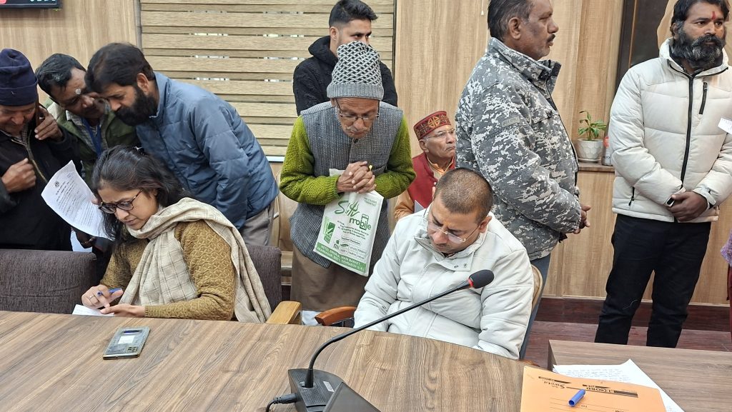 जिलाधिकारी सविन बंसल के निर्देशों पर सोमवार को ऋषिपर्णा सभागार में अपर जिलाधिकारी केके मिश्रा की अध्यक्षता में जनता दरबार लगाया गया। जनता दरबार में घरेलू व जमीन विवाद, सीमांकन, सड़क डामरीकरण, सिंचाई गूल, ऋण माफी, आर्थिक अनुदान, भरण पोषण, रोजगार आदि से जुड़ी 130 समस्या/शिकायतें दर्ज हुई। अपर जिलाधिकारी ने मौके पर ही कई मामलों का निष्पादन किया साथ ही कुछ प्रकरणों को इससे जुड़े विभागों को अग्रसारित करते हुए विधि सम्मत त्वरित कार्रवाई करने के निर्देश दिए।