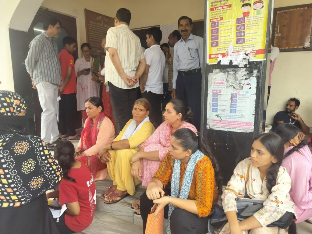 सुबह 5:00 बजे से लग जाती है लाइन।मातृशक्ति अपने छोटे-छोटे बच्चों को लेकर करती हैं अपनी बारी का इंतजार ।