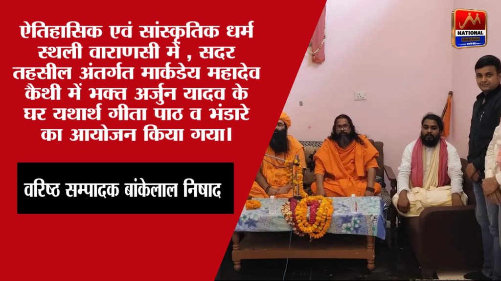 ऐतिहासिक एवं सांस्कृतिक धर्म स्थली वाराणसी में , सदर तहसील अंतर्गत मार्कंडेय महादेव कैथी में भक्त अर्जुन यादव के घर यथार्थ गीता पाठ व भंडारे का आयोजन किया गया। इस पावन शुभ अवसर पर विश्व गुरु विश्व गौरव से सम्मानित कालजयी धर्म शास्त्र यथार्थ गीता के प्रणेता समय के तत्व द्रष्टा महापुरुष अनंत विभूषित करुणा निधान परमहंस स्वामी श्री अड़गड़ानंद जी महाराज की आज्ञा से मोक्षदायिनी ज्ञान गंगा केंद्र श्री परमहंस आश्रम शक्तेषगढ़ से महात्माजन का पदार्पण हुआ। जिसमें श्री लाले महाराज जी , श्री शिवानंद जी महाराज, श्री राकेशानंद जी महाराज, श्री मनीषानंद जी महाराज, एवं श्री कन्हैया महाराज जी का आगमन हुआ। अनंत जन्म जन्मांतर से पूज्य श्री गुरुदेव भगवान के परमात्मपथिक शिष्य गणों द्वारा उनका भव्य – नव्य स्वागत व वंदन किया गया। तत्पश्चात सत्यान्वेषियो संत महात्माओं का सत्संग- प्रवचन हुआ । श्री लाले महाराज जी ने बताया कि “*जिंदगी कर दो अर्पण गुरु की शरण में*” पर बोलते हुए उन्होंने बताया कि सद्गुरु की इनायत बनकर अर्थात ऐसे गुरु कि जो पूर्णत्व को प्राप्त कर लिये हैं ऐसे तत्व द्रष्टा महापुरुष की शरण- शानिध्यता में ज्यों- ज्यों अपने आपको समर्पित करते जाएंगे तो उन परम प्रभु की कृपा स्वत: मिलती जाएगी । सत्संग के अंत में उन्होंने बताया कि यथार्थ गीता पूरे संसार को पढनी चाहिए घर- घर में यथार्थ गीता होनी चाहिए और यथार्थ गीता ज्यों- ज्यों पढ़ते जाएंगे तो ईश्वरीय राह मिलती जायेगी। और भगवान के तरफ बढ़ने का मार्ग स्वयं मिल जायेगा। और श्री राकेशानंद जी ने बताया कि शास्त्र और सद्गुरु के बिना मनुष्य अंधा है और अंधे मनुष्य को सुमार्ग से कुमार्ग पर जाते देर नहीं लगेगी । इसलिए संसार में रहते भगवान की तरफ बढ़ना है तो मानव मात्र का धर्म- शास्त्र यथार्थ गीता का अध्ययन करें और तत्वदर्षी महापुरुष का शरण -सानिध्य प्राप्त करें। गीतोक्त साधना के अनुसार चलेंगे तो भगवान की कृपा मिलती रहेगी। संत श्री शिवानंद जी महाराज ने कहा कि भगवान सबके हृदय में होता है बाहर कहीं नहीं । उन्होंने भजन के माध्यम से कि *जब तक पुजबा पथरा पानी अन्तर्यामी न मिले* सैकड़ों की संख्या में उपस्थित भक्तों को बताये कि परमात्मा सबके हृदय देश में रहते हैं। इसलिए पूज्य श्री गुरुदेव भगवान के बताये मार्ग पर चल कर हृदय स्थित परमात्मा को प्राप्त करें। ईश्वर: सर्वभूतानां हृदशेअर्जुन तिष्ठंति।