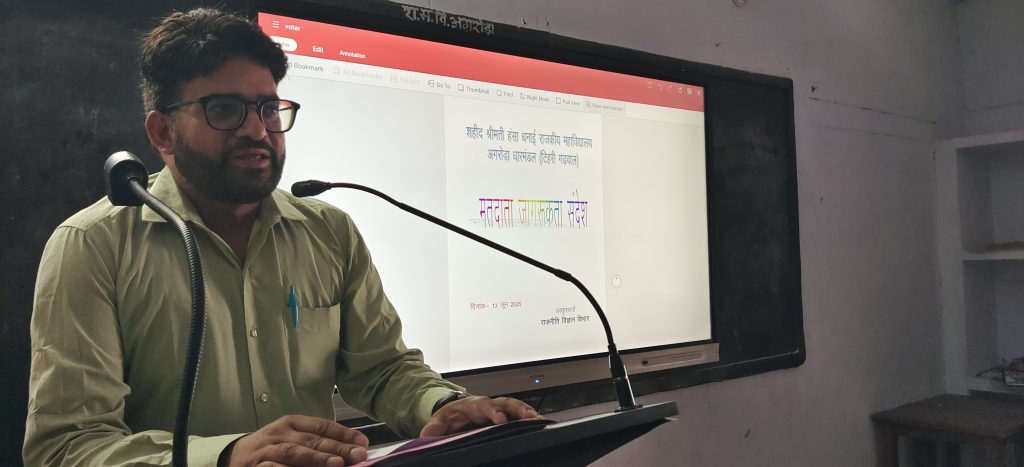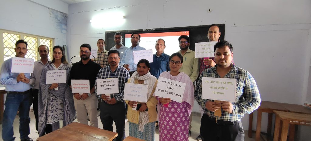 आज दिनांक 13-जून,2025 को महाविद्यालय में मतदाता जागरुकता संदेश की एक गोष्ठी का अयोजन किया गया इस गोष्ठी की अध्यक्षता प्राचार्य डॉ० के० एस० जौहरी जी के मार्गदर्शन में किया गया प्राचार्य महोदय ने इस अवसर पर नए मतदाता को मतदान सूची में सम्मिलित होने के महत्व को बताया। और कहा मतदाता मतदान करके अपने भविष्य का निर्धारण करता है ।मतदाता जागरूकता के संजोयक श्री रमेश चंद्र,श्री कृष्णपाल सदस्य , डॉ०अजय कुमार सिंह,डा०अजय कुमार , श्रीमती सीमा , श्री हरिमोहन, श्रीमती रश्मि , श्री धिरेश विजल्वान, डॉ० योगेंद्र सिंह गुसाईं, डॉ० प्रमोद सिंह, श्री जोगेंद्र कुमार,डॉ० मीरा रावत एवं श्री बलवीर सिंह बिष्ट , श्री कुंदन लाल, श्री अजीत सिंह, श्री हरीश मोहन नेगी, श्री रोहित कुमार ,श्री अंकित रावत, श्री सुरेन्द्र रावत, श्री मिलन रावत, श्री प्रताप सिंह राणा, श्रीमती लक्ष्मी देवी, श्री कान्ति राम उपस्थित रहे।