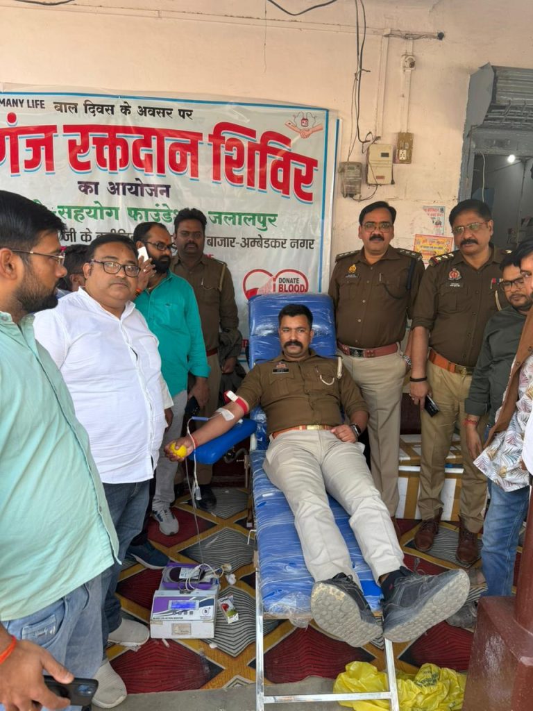 बालदिवस के शुभ दिन पर “रक्तदान महादान” के नक्शे-कदम पर चलते हुए सहयोग फाउंडेशन जलालपुर के तत्वावधान में रफीगंज में वृहद रक्तदान शिविर आयोजित किया गया। 14 नवंबर के आयोजित इस वृहद रक्तदान शिविर में लगभग 27 लोगों ने रजिस्ट्रेशन कराया और 20 लोगों ने रक्तदान किया । शिविर में क्षेत्राधिकारी अनूप सिंह व जलालपुर कोतवाल संतोष सिंह क्रमशः बतौर मुख्य अतिथि व विशिष्ट अतिथि के रूप में उपस्थित होकर रक्तदान कर रहे रक्त दानवीरों का हौसला अफजाई किये। इस विशेष शिविर में रक्तदान वीरों में अध्यक्ष आशुतोष सिंह, गरीब मरीजों के प्राण रक्षक डाक्टर राधेश्याम यादव, संतोष सिंह, देवेश पांडे, अविरल सिंह, ऋषभ सिंह, रिंकू सिंह , अमित, वीरेंद्र, हरीश आनंद, विवेक, अवधेश, राम अवतार, किशोर, शहर आलम, सौरभ, प्रिंस मनीष, अली हसन, गोविंद, आकाश, धीरेंद्र, शरद, जानशिफा सम्मिलित रहे। ज्ञातव्य हो कि आज बालदिवस है। इस दिन का मुख्य उद्देश्य बच्चों के शिक्षा, सुरक्षा, विकास व अधिकारों की रक्षा करना है। इसी दिन उक्त शिविर के आयोजन से समाज को यह संदेश दिया गया है कि बच्चों को व उनके मां-बाप की सुरक्षा संरक्षा व सेवा तभी होगा जब हम निष्पक्ष होकर सेवा भाव से रक्तदान करके समाज में जरुरतमंदों के काम आयें ।