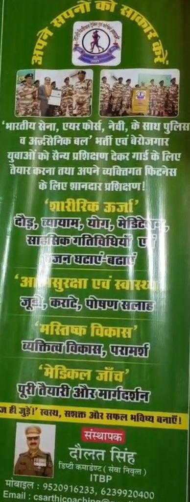सारथी अकादमी की स्थापना दौलत सिंह सेवानिवृत्त डिप्टी कमांडेंट, आईटीबीपी द्वारा की गई है। वे राष्ट्रपति पदक से सम्मानित अधिकारी हैं, जिन्होंने देश सेवा के उपरांत अब समाज सेवा का संकल्प लेते हुए युवाओं को प्रशिक्षित कर राष्ट्र निर्माण में योगदान देने का बीड़ा उठाया है।