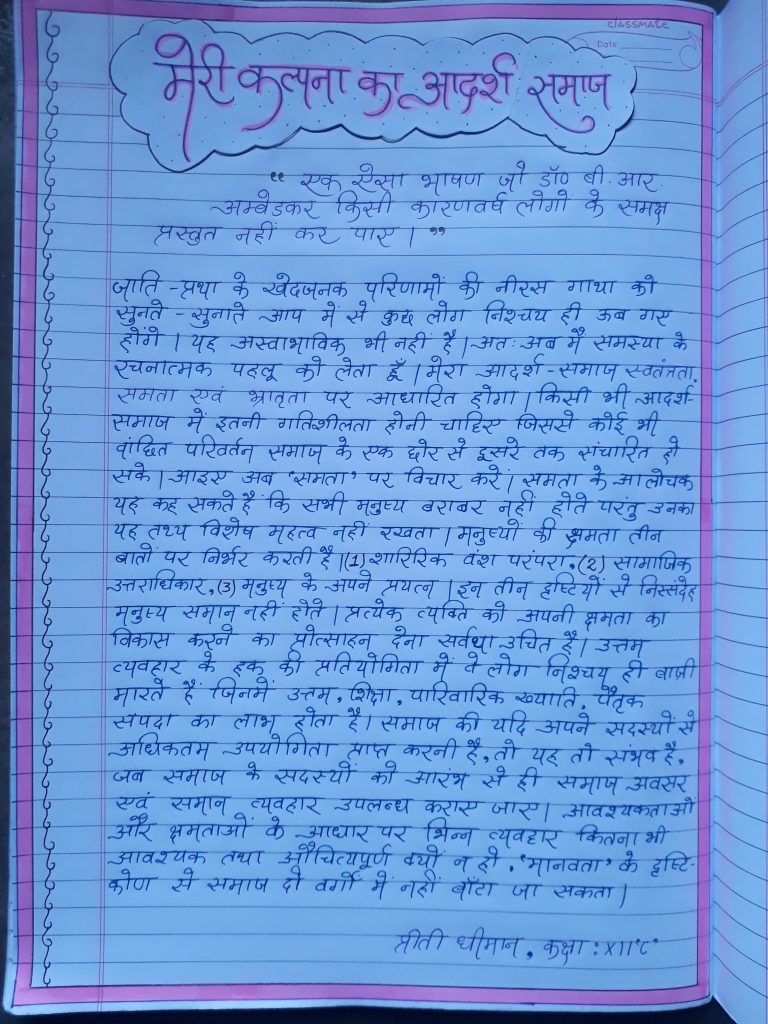 प्रार्थना सभा के अंत में प्रधानाचार्य श्री नवीन तनेजा तथा सुश्री रश्मि गोयल ने भीम राव अम्बेडकर जी के आदर्शों का वर्णन करते हुए उनके जीवन के महत्वपूर्ण तथ्यों की जानकारी विद्यार्थियों को प्रदान की।