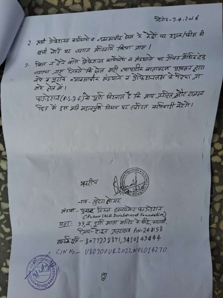 इस पूरे मामले को लेकर एसडीएम विकासनगर को एक शिकायत पत्र सौंपा गया है