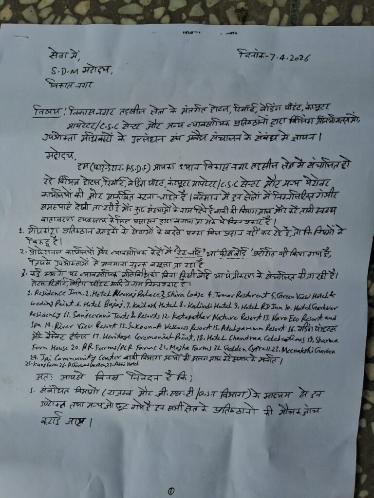 विकासनगर में संचालित होटल, रिसॉर्ट, वेडिंग प्वाइंट और CSC सेंटर सहित कई व्यावसायिक प्रतिष्ठानों के खिलाफ बड़ी शिकायत सामने आई है…