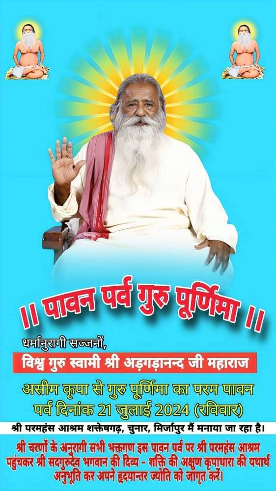 मिर्जापुर।पर्वों में सर्वश्रेष्ठ पर्व है गुरु पूर्णिमा (व्यास पूर्णिमा) — स्वामी अड़गड़ानंद जी महाराज July 17, 2024 No Comments Read More »