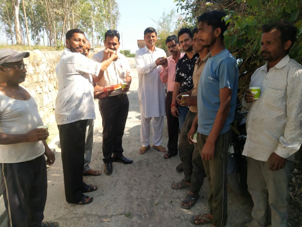 हवा में झूल रही ढीले तारों वाली विद्युत लाइन को 2 दिन के अंदर कब्रिस्तान से स्थानांतरित किए जाने पर विद्युत विभाग के कर्मचारियों का मिष्ठान खिलाकर जोरदार स्वागत किया गया
