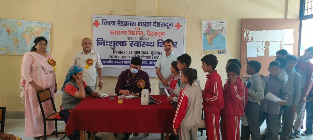 जिला रेडक्रॉस शाखा देहरादून एवं स्वास्थ्य विभाग देहरादून के संयुक्त प्रयासों से चकराता के दुर्गम विद्यालय राजकीय उच्चतर माध्यमिक विद्यालय गोरछा में एक विशाल नि:शुल्क स्वास्थ्य शिविर का आयोजन किया गया।