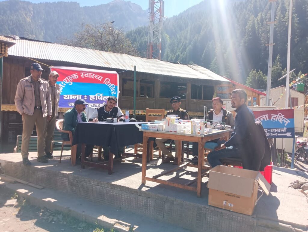 उत्तरकाशी के दूरस्थ क्षेत्र हर्षिल मे लगाया गया निशुल्क मेडिकल कैम्प। थाना हर्षिल पुलिस द्वारा स्वामी विवेकानंद चैरिटेबल ट्रस्ट गंगोत्री के सौजन्य से आज 15.10.2024 को जनपद उत्तरकाशी के दूरस्थ एवं सीमांत क्षेत्र हर्षिल में निःशुल्क स्वास्थ्य शिविर आयोजित किया गया। मेडिकल कैम्प मे स्वामी विवेकानंद चैरिटेबल ट्रस्ट के चिकित्सकों द्वारा स्थानीय लोगों व तीर्थ यात्रियों का स्वास्थ्य परीक्षण किया गया। स्वस्थ शरीर व बीमारियों से बचाव हेतु उपयोगी परामर्श दिये गये। स्वास्थ्य शिविर मे हर्षिल, बगोरी, मुखवा, धराली आदि गांवो के 150 ग्रामीणों एवं तीर्थ यात्रियों द्वारा जांचे करवाकर स्वास्थ्य लाभ प्राप्त किया गया।