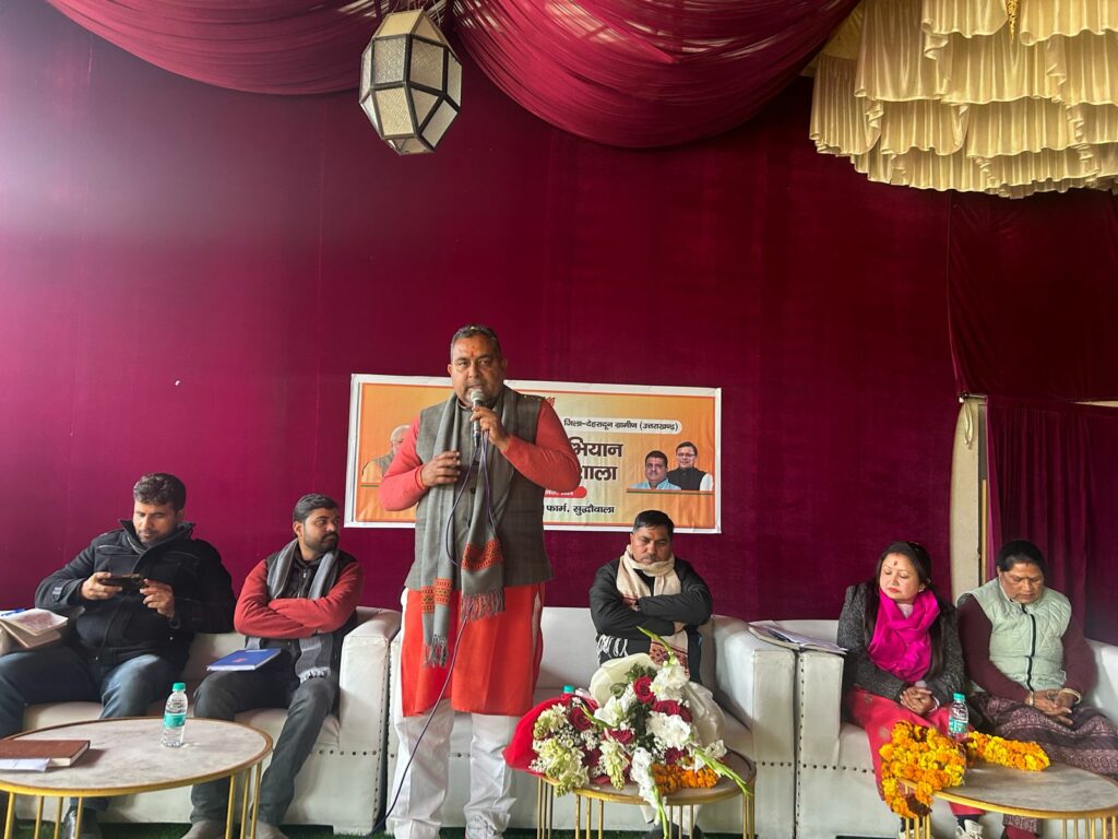 इस मौके पर मुख्य रूप से मौजूद सहसपुर विधायक सहदेव सिंह पुंडीर ने अपने संबोधन में कहा की सभी भाजपा कार्यकर्ता को इस अभियान की सफलता के लिए तत्पर रहना होगा। कहा प्रधानमंत्री नरेंद्र मोदी के आह्वान पर सभी जन प्रतिनिधि एवं कार्यकर्ता “गांव चलो अभियान के तहत गांव-गांव जाकर वहां के लोगों से बात करेंगे व उनकी समस्याओं का समाधान करेंगे। भाजपा हमेशा से जमीनी स्तर पर काम करती आई है और आगे भी करेगी। विधायक ने कहा अभियान के तहत गांव में जी भी व्यक्ति दस बीस वोट प्रभावित कर सकता हैं उन्हें पार्टी से जोड़ना है। गांव की प्रत्येक जाति के व्यक्ति को भाजपा से जोड़ना है। 2019 की तुलना में 2024 में प्रत्येक बूथ पर 10 प्रतिशत अधिक मत हासिल करने का लक्ष्य लेकर काम करना हैं। कहा भाजपा जिन संकल्पों को लेकर जनता के बीच पहुंची थी उन संकल्पों को मोदी सरकार ने पूरा किया हैं निश्चित रूप से आगामी लोकसभा चुनाव में भाजपा 400 से अधिक सीटों पर विजय दर्ज करेगी।