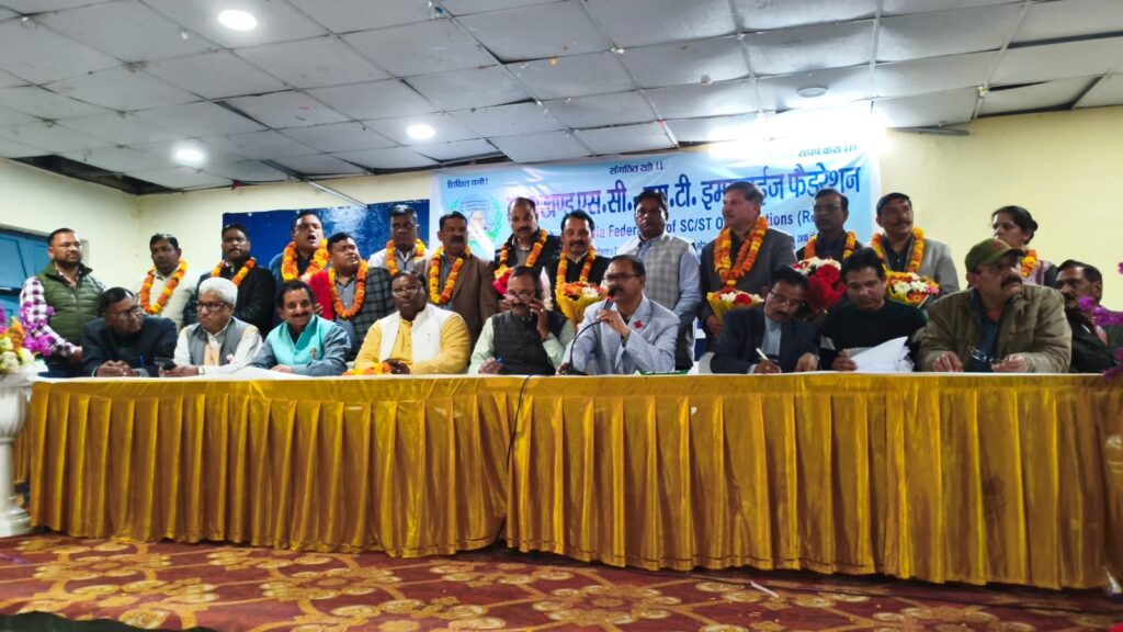 उत्तराखंड एससी एसटी एम्पलाइज फेडरेशन के प्रांतीय अधिवेशन में मुख्य अतिथि के रूप में बोलते हुए पूर्व अपर शिक्षा निदेशक रघुनाथ आर्य ने कहा कि सरकार ने वर्ष 2012 में जस्टिस इरशाद हुसैन आयोग गठित किया था जिसकी रिपोर्ट सरकार के पास है सरकार को उसे रिपोर्ट पर उत्तराखंड विधानसभा में चर्चा कराकर निर्णय लेना चाहिए विगत वर्षों में अनुसूचित जाति अनुसूचित जनजाति का प्रतिनिधित्व अत्यंत नून हो गया है इसलिए इस वर्ग को पदोन्नति के पदों में प्रतिनिधित्व दिया जाना नितांत आवश्यक है उन्होंने बैकलॉग पूरा करने पर भी जोड़ दिया फेडरेशन के संस्थापक मदन कुमार शिल्पकार ने कहा कि विगत 26 वर्षों में वंचित वर्ग का समुचित विकास नहीं हो पाया है सरकार को इस और ध्यान देना चाहिए