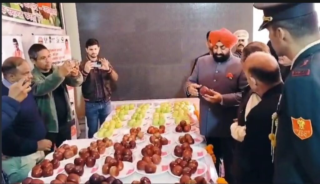 वाईब्रेंट विलेज परिचर्चा सम्मेलन‘ में राज्यपाल लेफ्टिनेंट जनरल गुरमीत सिंह सेब की विभिन्न प्रजाति की प्रदर्शनी देख कर काश्तकारों से बागवानी पर चर्चा की:—–