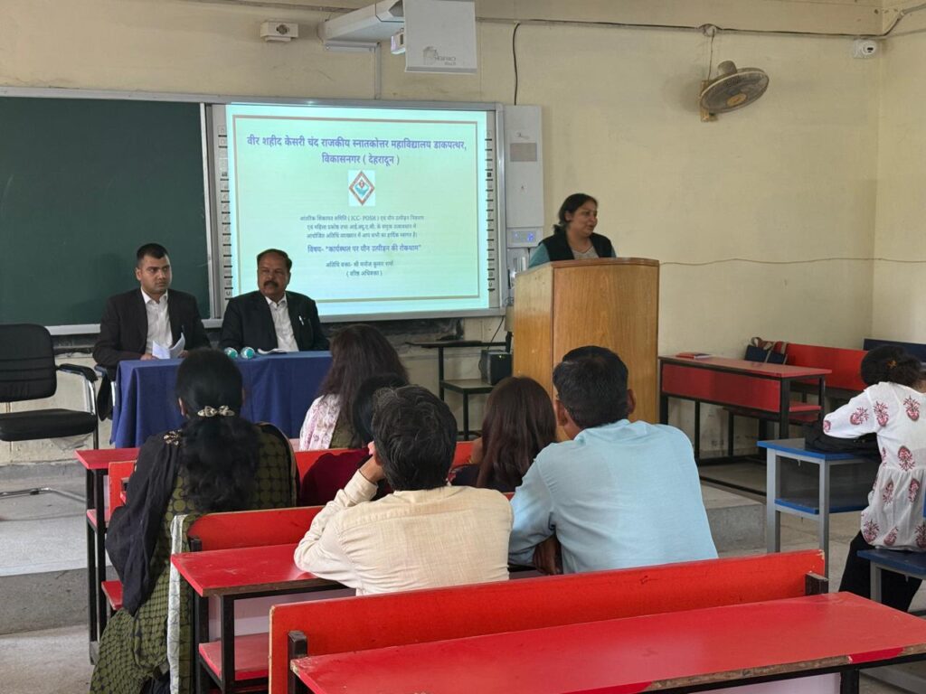 वीर शहीद केसरी चंद राजकीय स्नातकोत्तर महाविद्यालय में कार्यस्थल यौन उत्पीड़न रोकथाम पर अतिथि व्याख्यान