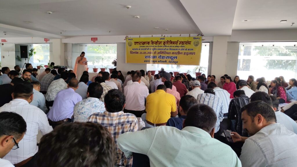 उत्तराखंड डिप्लोमा इंजीनियर्स महासप की लंबे समय से शासन स्तर पर लंबित 27 सूत्रीय समस्याओं के समाधान हेतु मा० मुख्यमंत्री जी की शासन के उच्च स्तर के अधिकारियों के साथ शुक्रवार सांग को आहूत बैठक में समस्याओं के सकारात्मक समाधान हेतु निर्देशित करने के बावजूद शासन द्वारा आज भी महासंघ को इस आशय का वार्ता हेतु कोई आमंत्रण प्राप्त न होने के कारण संपूर्ण प्रदेश में महासंघ की सभी शाखाओं में दि० 23.03.26 से प्रारम्भ हुई अनिश्चितकालीन हड़ताल आज दि० 04.04.26 को अनवरत जारी रही। शाखा देहरादून के सदस्यों द्वारा लोक निर्माण विभाग, विभागाध्यक्ष परिसर के सम्मुख लगातार 13वें दिन हडताल कार्यक्रम में भारी संख्या में प्रतिभाग किया गया। दिनांक 04.04.2026 के हडताल कार्यक्रम को मातृशक्ति को समर्पित करते हुये आज का कार्यक्रम महिला शक्ति के नेतृत्व में सम्पादित किया गया जिसके क्रम में सभा की अध्यक्षता इ० समीक्षा शमां एवं मंच संचालन इ० सुजाता पाल द्वारा किया गया। इसी बीच आज उत्तराखण्ड डिप्लोमा इंजीनियर्स महासंघ के पूर्व प्रान्तीय अध्यक्ष एवं संरक्षक इ० डी०सी० नौटियाल, द्वारा हडताल स्थल पर पहुँच कर महासंघ की मागों पर अपना पूर्ण समर्थन व्यक्त किया गया एवं महासंघ की न्यायोचित मांगों पर तत्काल कार्यवाही हेतु शासन का आ‌ह्वान किया गया।