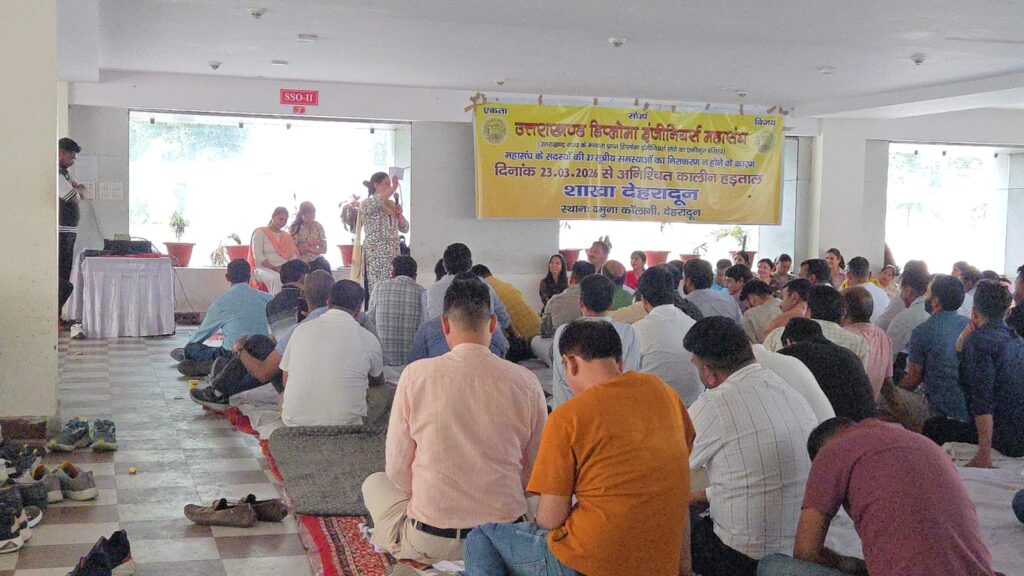 उत्तराखंड डिप्लोमा इंजीनियर्स महासप की लंबे समय से शासन स्तर पर लंबित 27 सूत्रीय समस्याओं के समाधान हेतु मा० मुख्यमंत्री जी की शासन के उच्च स्तर के अधिकारियों के साथ शुक्रवार सांग को आहूत बैठक में समस्याओं के सकारात्मक समाधान हेतु निर्देशित करने के बावजूद शासन द्वारा आज भी महासंघ को इस आशय का वार्ता हेतु कोई आमंत्रण प्राप्त न होने के कारण संपूर्ण प्रदेश में महासंघ की सभी शाखाओं में दि० 23.03.26 से प्रारम्भ हुई अनिश्चितकालीन हड़ताल आज दि० 04.04.26 को अनवरत जारी रही। शाखा देहरादून के सदस्यों द्वारा लोक निर्माण विभाग, विभागाध्यक्ष परिसर के सम्मुख लगातार 13वें दिन हडताल कार्यक्रम में भारी संख्या में प्रतिभाग किया गया। दिनांक 04.04.2026 के हडताल कार्यक्रम को मातृशक्ति को समर्पित करते हुये आज का कार्यक्रम महिला शक्ति के नेतृत्व में सम्पादित किया गया जिसके क्रम में सभा की अध्यक्षता इ० समीक्षा शमां एवं मंच संचालन इ० सुजाता पाल द्वारा किया गया। इसी बीच आज उत्तराखण्ड डिप्लोमा इंजीनियर्स महासंघ के पूर्व प्रान्तीय अध्यक्ष एवं संरक्षक इ० डी०सी० नौटियाल, द्वारा हडताल स्थल पर पहुँच कर महासंघ की मागों पर अपना पूर्ण समर्थन व्यक्त किया गया एवं महासंघ की न्यायोचित मांगों पर तत्काल कार्यवाही हेतु शासन का आ‌ह्वान किया गया।