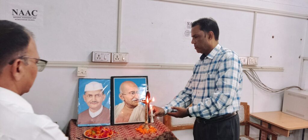शहीद श्रीमती हंसा धनाई राजकीय महाविद्यालय अगरोड़ा में मनाया गया अंतर्राष्ट्रीय अहिंसा दिवस ।कार्यक्रम का शुभारंभ प्राचार्य डॉ0 के0 एस0 जौहरी जी ने ध्वजारोहण करके किया। राष्ट्रगान एवं देशभक्ति पूर्ण नारों के उपरांत राष्ट्रपिता महात्मा गांधी एवं लाल बहादुर शास्त्री जी के छायाचित्र के सम्मुख प्राचार्य जी , समस्त प्राध्यापक वर्ग कर्मचारी एवं छात्र-छात्राओं द्वारा पुष्पांजलि अर्पित कर गयी और उनके द्वारा राष्ट्र के लिए किये गये बलिदान और सेवाओं पर अपने-अपने विचार प्रस्तुत किए गए कार्यक्रम का संचालन महाविद्यालय समारोह श्रीमती सीमा द्वारा किया गया इस अवसर पर डॉ0अजय कुमार, डॉ0अजय कुमार सिंह ,डॉ0भारत गिरी गौंसाई जी एवं अन्य प्राध्यापक प्राध्यापिकाओं द्वारा महात्मा गांधी जी एवं लाल बहादुर शास्त्री जी के जीवन के प्रेरणादायक जीवन मूल्यों पर अपने-अपने विचार व्यक्त किए गए । महाविद्यालय की छात्र-छात्राओं द्वारा भी भाषण प्रतियोगिता में समूह गीत ,रामधुन और वैष्णव जन आदि गीतों का
