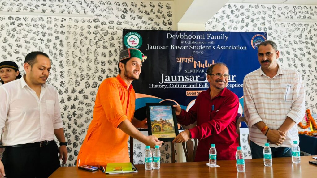 विकासनगर, 23 सितंबर। दिल्ली विश्वविद्यालय में अध्ययनरत जौनसार बावर, रवांई, जौनपुर एवं हिमाचल के छात्रों के साथ देवभूमि फैमिली एवं जौनसार बावर स्टूडेंट एसोसिएशन “हमारो मुलुक” कार्यक्रम के तहत लोक पंचायत के वरिष्ठ सदस्य श्रीचंद शर्मा ने मुख्य अतिथि के रूप में अपने संबोधन में कहा कि पहाड़ की संस्कृति, रहन-सहन और जीवन जीने की पद्धति अद्भुत है। हमें अपने संस्कारों और संस्कृति को बचाए रखना चाहिए।