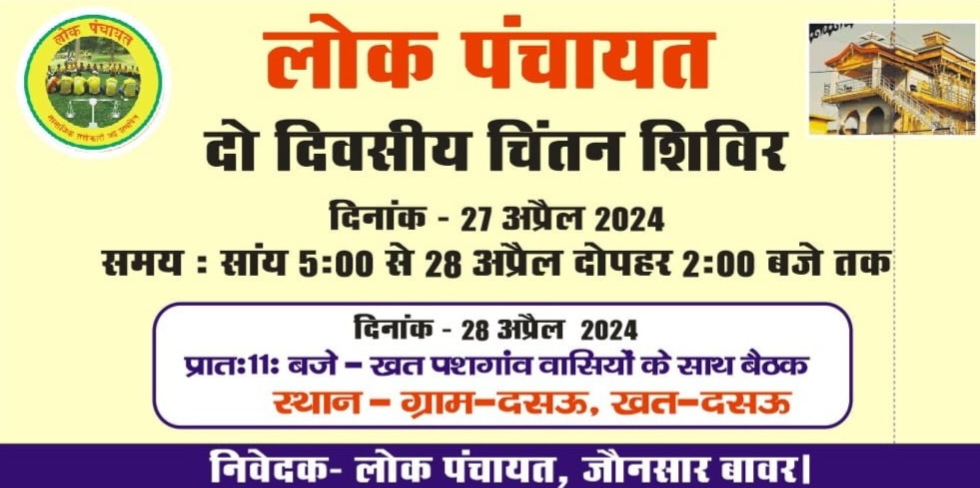 उन्होंने कहा है कि सामाजिक क्षेत्र में सक्रिय रूप से अपनी भूमिका निभाने वाले तमाम कार्यकर्ता दो दिवसीय चिंतन शिविर में सम्मिलित होंगे। दो दिवसीय चिंतन शिविर में जौनसार बावर में बढ़ती नशे की प्रवृत्ति पर अंकुश लगाना, जौनसार बावर की संस्कृति का सकारात्मक रूप से प्रचार प्रसार करना, पलायन पर रोक लगाना, पर्यटन एवं बागवानी को बढ़ावा देना आदि तमाम विषयों पर चर्चा वार्ता होगी।
