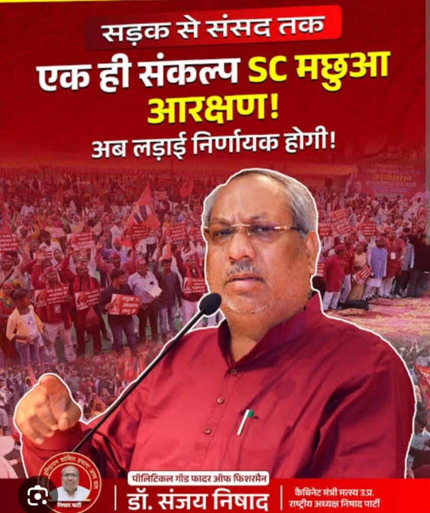 2914 से लेकर अब तक केंद्र और राज्य में भाजपा के साथ कंधों से कंधा मिलाकर हम सफर बने निषाद समाज को अभी तक आरक्षण नहीं मिला। 2014, 2017, 2019, 2022, 2024, लोकसभा का चुनाव हो या विधानसभा अथवा अन्य उपचुनाव हर एक चुनाव में निषाद वोट बैंक भाजपा का बेस वोट रहा है और अब एक बार फिर 2027 में उत्तर प्रदेश का विधान सभा चुनाव सर पर है जहां से दिल्ली की कुर्सी तय होती है। पूर्ववर्ती सरकारें चाहे सपा बसपा कांग्रेस जो भी रही हों उनके पास केन्द्र और राज्य सरकारों के बीच तालमेल न बैठ पाने का एक बहाना था लेकिन भाजपा के पास कोई बहाना नहीं है। 2014 से ही भाजपा केंद्र में आरूढ़ है । 72 घंटे के अंदर भाजपा ने 10 प्रतिशत आरक्षण सामान्य वर्ग (ई डब्ल्यू एस) को आरएसएस प्रायोजित फारवर्ड लाभांश के तहत दे दिया है। जिसके लिए कभी न मांग उठी और न ही निषाद समाज कितना बड़ा कभी आंदोलन खड़ा हुआ । फिर भी उन्हें बड़ी आसानी से 72 घंटे के अंदर सामान्य वर्ग को १० प्रतिशत का आरक्षण दे दिया गया। जबकि भाजपा 2014 से ही निषादों को आरक्षण देने की गारंटी के तहत निषादों का वोट और सपोर्ट दोनों लेती रही। लेकिन पूर्ववर्ती सरकारों की तरह भाजपा भी निषादों के साथ वफाई के बदले बेवफाई कर रही है। जबकि निषादों की संख्या लगभग 16 प्रतिशत है लेकिन अभी भी निषादों को उसके वोट, सपोर्ट व वफाई का पारिश्रमिक नहीं मिला। यहां तक कि उत्तर प्रदेश के मुखिया योगी आदित्यनाथ जो कभी सांसद रहा करते थे तब निषाद आरक्षण की बात करते थे लेकिन जब से वे मुख्यमंत्री हुए हैं कभी भी आरक्षण की बात नहीं किये। यहां तक कि महज 2 प्रतिशत आबादी वाले मौर्य समाज को उन्होंने डिप्टी सीएम बना दिया है लेकिन 18 प्रतिशत आबादी वाले और उत्तर प्रदेश की तीसरी बड़ी पार्टी निषाद पार्टी के मुखिया डाक्टर संजय निषाद को महज कैबिनेट मंत्री बनाकर रखा है और विभाग मिला है केवल मत्स्य। डॉक्टर संजय निषाद एक भाजपा के वफादार सिपाही के रुप में विनम्र भाव में आरक्षण की उम्मीद में हैं कभी कभार उनका दर्द छलक जाता है तो उनके आंसू निकल आते हैं। उनका बार-बार आग्रह भाजपा से रहा है कि हमारे साथ भाजपा पूर्ववर्ती सरकारों की तरह व्यवहार न करें। हम त्रेता से साथ रहे हैं। हमारे समाज के ब्लड में गद्दारी नहीं है हम जितनी वफादारी और इमानदारी से भाजपा के साथ हैं उतनी ही हम भाजपा से अपेक्षा रखते हैं। हमें Inclusion (शामिल) नहीं Explanation (परिभाषित) के आधार पर आरक्षण चाहिए और 2017 के चुनाव के पहले चाहिए जिससे हम समाज को जवाब दे सकें। उनका तर्क है कि हमारे ही समाज के तुरैया मंझवार अनुसूचित जाति में है उन्हीं को परिभाषित करके हमारे समाज को आरक्षण दिया जाए। अन्यथा की स्थिति में निषाद यदि धैर्य खोया तो 2027 का चुनाव तो जाएगा ही 2029 के लोकसभा चुनाव को भी ले डूबेगा। ज्ञातव्य हो कि संवि