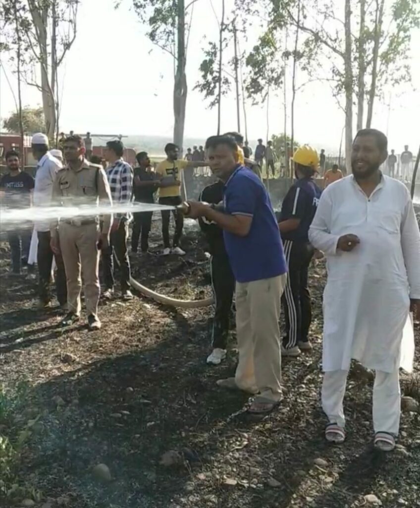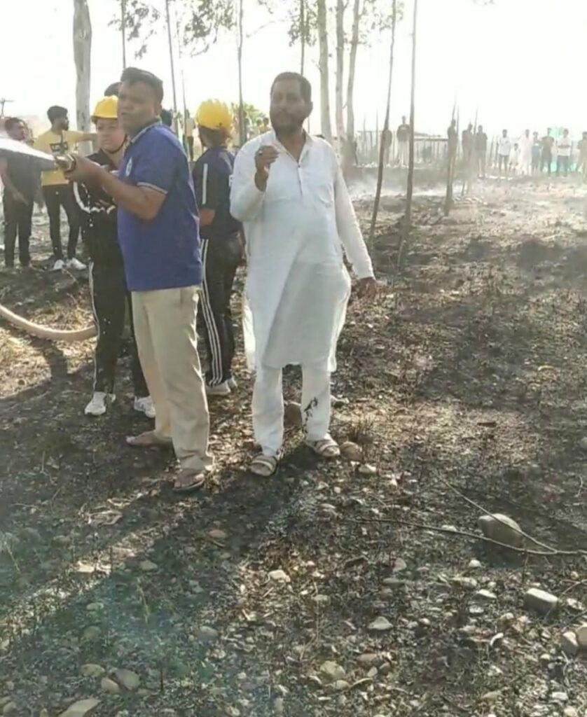 चानचक,सहसपुर,(विकास नगर) देहरादून 21 अप्रैल 2024 : आज अपराह्न 4:10 बजे ग्राम चानचक के कब्रिस्तान के पास रहने वाली *मोहम्मद आरिफ की लड़की नूरानी ने ग्राम पंचायत लक्ष्मीपुर के पूर्व प्रधान एवं पूर्व जिला कांग्रेस अध्यक्ष मोहम्मद यामीन अंसारी को फोन करके बताया कि ग्राम चानचक के कब्रिस्तान में आपके गेहूं के खेत के पास आग की भयंकर लपटे उठ रही है तभी यामीन अंसारी ने थाना अध्यक्ष सहसपुर श्री मुकेश त्यागी, एस एस आई श्री भुवन पुजारी एवं फायर स्टेशन सेलाकुई एवं विद्युत विभाग सहसपुर को तुरंत सूचना दी और गांव की मस्जिद के मौलाना मोहम्मद समीर ने अनाउंसमेंट करके गांव वालों को अग्निकांड स्थल कब्रिस्तान पर तुरंत बुलाया आग को बुझाने के लिए ! आनन फानन में मोहम्मद यामीन अंसारी गांव के नौजवान लड़कों इम्तियाज, मोहम्मद परवेज, अमजद,दुल्ली, इश्तियाक, शाहरुख खान, समीर ,फैजान, साहिब, वसीउर्र रहमान, इंतखाब आलम, अरबाज आदि सैकड़ो लड़कों को अग्निकांड स्थल कब्रिस्तान पर लेकर गए और हरे पेड़ों की टहनियों के झाड़ू बनाकर उनसे आग को बुझाना शुरू किया इसी दौरान सहसपुर थाना अध्यक्ष मुकेश त्यागी द्वारा भेजी गई सब इंस्पेक्टर ओमवीर के नेतृत्व में 6 सदस्य पुलिस टीम अग्निकांड स्थल पर पहुंच गई और फायर ब्रिगेड की टीम हवलदार अजब सिंह, चालक विपिन कुमार, कांस्टेबल विकास खर्फ व दो