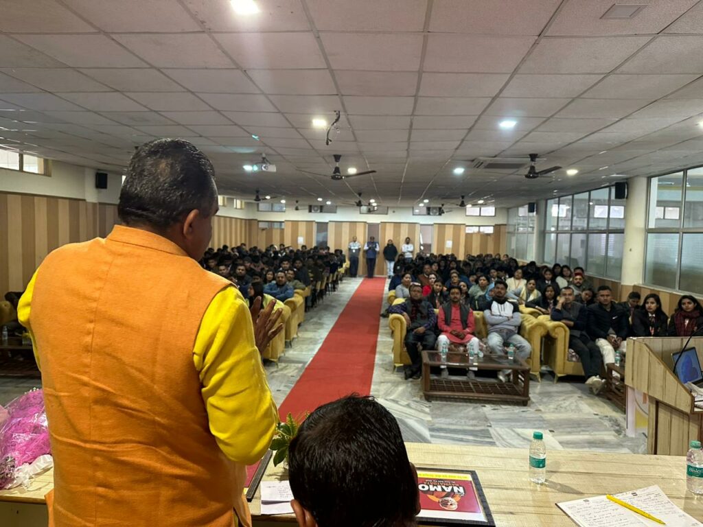 प्रधानमंत्री नरेंद्र मोदी ने राष्ट्रीय मतदाता दिवस के उपलक्ष पर गुरुवार को जयपुर में आयोजित भारतीय जनता युवा मोर्चा के नमो मतदाता सम्मेलन में नव मतदाताओं को वर्चुअल संबोधित किया गया। इस अवसर पर विधानसभा सहसपुर के अंतर्गत सहसपुर विधायक सहदेव सिंह पुंडीर के नेतृत्व में डीबीआईटी कॉलेज मांडूवाला में कार्यक्रम आयोजित किया गया। कार्यक्रम का आयोजन जिला देहरादून ग्रामीण युवा मोर्चा द्वारा किया गया जिसमे सैकड़ों की संख्या में मौजूद कॉलेज के छात्र – छात्राओं, स्थानीय युवाओं और भाजपा युवा मोर्चा समेत मंडल पदाधिकारियों द्वारा प्रधानमंत्री नरेंद्र मोदी के कार्यक्रम को सुना गया।