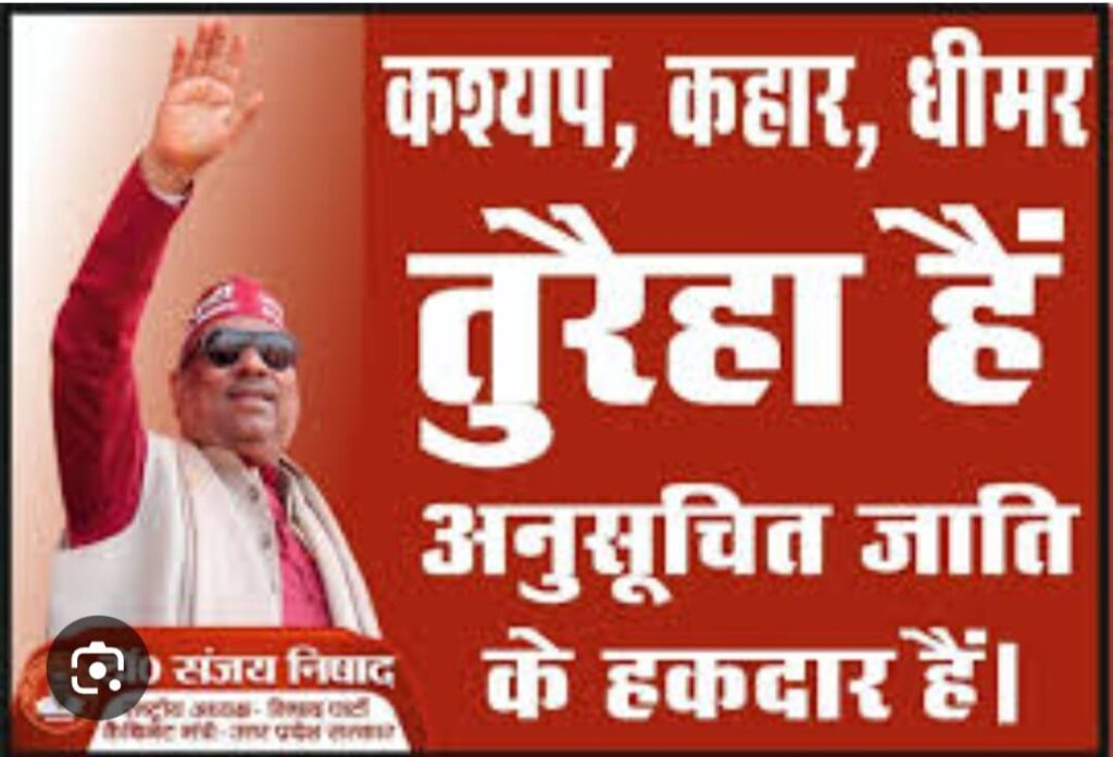 “पिछड़ी से नाम खारिज करो” “मझवार आरक्षण जारी करो” केवट मल्लाह बिंद रायकवार बाथम गोड़िया, मांझी, आवाज दो हम अनुसूचित के हकदार हैं और डाक्टर संजय निषाद के साथ हैं जैसे अनगिनत स्लोगन के साथ निषाद समाज आरक्षण के लिए आवाज बुलंद करता रहा है। विगत सरकारें निषाद आरक्षण पर ध्यान नहीं दिया जिसके परिणामस्वरूप वे वेंटिलेटर पर हैं। अब निषाद समाज 2014, से लगातार 2017, 2019, 2022, 2024 के चुनावी सफर में भाजपा के साथ कंधों में कंधा मिलाकर खड़ा है। आरक्षण की आस में डाक्टर संजय निषाद के नेतृत्व में पूरे आबादी का 18 प्रतिशत निषाद समाज भाजपा को सत्ता के सुख में गोते लगवा रहा है। दिन रात डाक्टर संजय निषाद निषाद समाज को एक ही आश्वासन देते रहे कि भाजपा हमें मझवार/ तुरैया इत्यादि को परिभाषित करके अनुसूचित जाति का दर्जा देगी जिससे निषाद समाज की हर क्षेत्र में पर्याप्त भागीदारी होगी व राजनीतिक, शैक्षिक ,आर्थिक उन्नयन व निषाद समाज अपने लिविंग स्टैंडर्ड को सुधार सकेंगे। एकमात्र आरक्षण की उम्मीद में निषाद समाज भाजपा के सियासी उथल-पुथल में हमेशा भाजपा के साथ रहा । लेकिन अभी तक निषाद समाज को आरक्षण नहीं मिला। कहीं निषाद समाज का सब्र टूटा तो भाजपा का भी वही हश्र होगा जो सपा बसपा और कांग्रेस का हुआ है। अभी हाल ही में निषाद पार्टी के सुप्रीमो व कैबिनेट मंत्री डाक्टर संजय निषाद ने विधानसभा में योगी सरकार को चेतावनी दे दी कि भाजपा हमें