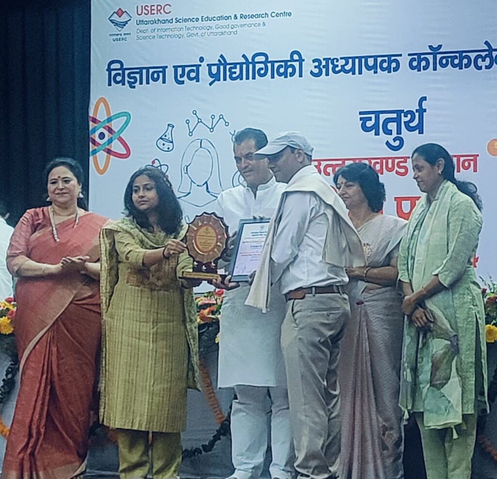 यूसर्क द्वारा उत्तराखण्ड राज्य में विज्ञान शिक्षा, पर्यावरण संरक्षण, प्रौद्योगिकी, नवाचार तथा सामाजिक अन्वेषण के क्षेत्र में विशिष्ट एवं अनुकरणीय कार्य करने वाले उत्तराखण्ड राज्य के शिक्षकों को चतुर्थ ‘उत्तराखण्ड विज्ञान शिक्षा प्रसार सम्मान’ 2024-25 से सम्मानित किया गया है।