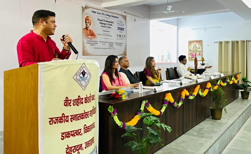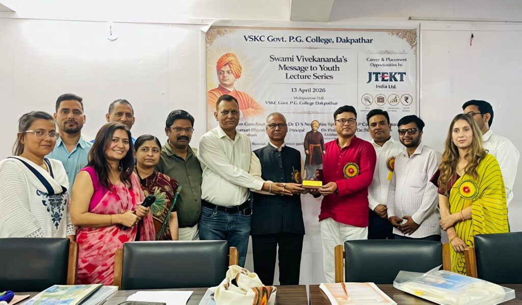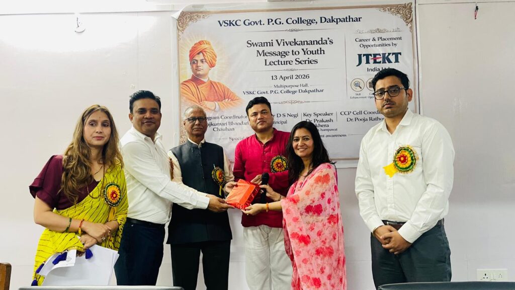वीर शहीद केसरी चंद राजकीय स्नातकोत्तर महाविद्यालय, डाकपत्थर में 13 अप्रैल 2026 को “स्वामी विवेकानन्द का युवाओं के लिए संदेश” विषय पर एक प्रेरणादायी व्याख्यानमाला का सफल आयोजन किया गया। यह कार्यक्रम युवा जागरण, व्यक्तित्व विकास और करियर मार्गदर्शन के समन्वित स्वरूप का प्रभावशाली उदाहरण रहा। व्याख्यानमाला की विशेषता यह रही कि स्वामी विवेकानन्द के प्रेरक विचारों को विद्यार्थियों के कैरियर निर्माण, आत्मविकास तथा रोजगार जागरूकता से जोड़ा गया, जिससे कार्यक्रम अत्यंत उपयोगी, प्रेरक और समसामयिक बन गया।