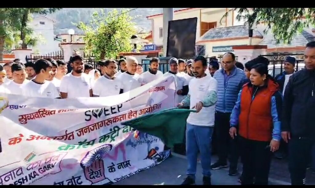 मतदाता जागरूकता के लिए स्वीप कार्यक्रम के तहत जिला मुख्यालय उत्तरकाशी में क्रॉस कंट्री दौड़ का आयोजन करने के साथ ही मनेरा स्टेडियम में आयोजित कार्यक्रम में मतदाता जागरूकता गीत लाँच किया गयाl