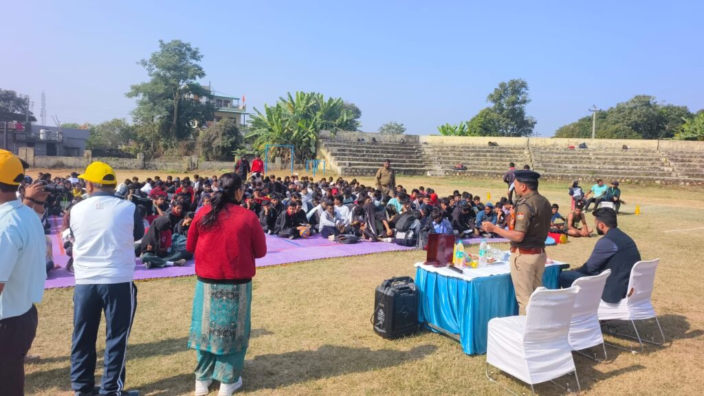 विकासखंड स्तरीय खेल महाकुंभ में प्रतिभाग करने वाले युवा खिलाड़ियों को नशे के दुष्प्रभावों के संबंध में जानकारी देते हुए किया जागरूक