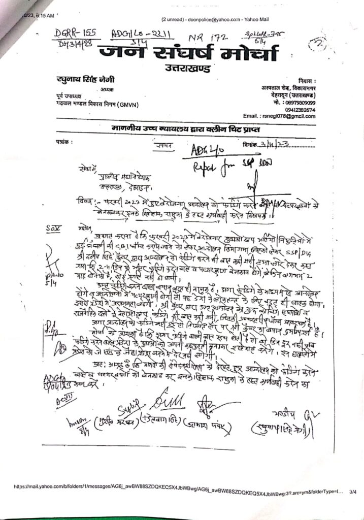 विकासनगर– जन संघर्ष मोर्चा अध्यक्ष एवं जीएमवीएन के पूर्व उपाध्यक्ष रघुनाथ सिंह नेगी ने पत्रकारों से वार्ता करते हुए कहा कि फरवरी 2023 में बेरोजगार संघ द्वारा महारैली का आयोजन किया गया था, जिसमें पत्थरबाजों द्वारा बेरोजगारों एवं पुलिस कर्मियों पर घातक हमला किया गया था, जिसमें आंदोलन को फंडिंग की बात उभर कर सामने आई थी,जिसको लेकर एसएसपी (तत्कालीन) श्री दिलीप सिंह कुंवर द्वारा दिनांक 14/ 2/23 को बयान जारी किया गया था कि उक्त आंदोलन को राजनीतिक दलों, कोचिंग संस्थानों व अन्य लोगों द्वारा किसी खास मकसद से फंडिंग की गई है ,लेकिन आज तक फंडिंग करने वालों का पर्दाफाश नहीं हो पाया |मोर्चा द्वारा 6/3/ 2023 को बेरोजगारों के आंदोलन को फंडिंग करने वाले व पत्थर बरसाने वाले पत्थरबाजों को चिन्हित कर इनके खिलाफ रासुका के तहत कार्रवाई को लेकर मा. मुख्यमंत्री को ज्ञापन सौंपा था, जिस पर मा. मुख्यमंत्री द्वारा कार्रवाई के निर्देश दिए थे, लेकिन कोई कार्रवाई नहीं हो पाई| नेगी ने कहा कि उक्त फंडिंग मामले का पर्दाफाश होना देशहित में बहुत जरूरी है| उक्त फंडिंग मामले को मोर्चा पूर्व में दिनांक 3/4/23 को डीजीपी श्री अशोक कुमार के समक्ष भी रख चुका है, लेकिन आज तक कोई ठोस कार्रवाई इस मामले में नहीं हो पाई | इतना अवश्य हुआ कि डीजीपी के निर्देश पर एसएसपी द्वारा विवेचक को फंडिंग मामले पर भी संज्ञान लेने के निर्देश दिए गए थे, लेकिन कोई कार्रवाई नहीं हो पाई| मोर्चा डेढ़ वर्ष से अधिक समय से इनके खिलाफ कार्रवाई की मांग को लेकर प्रयासरत है | नेगी ने कहा कि अगर इसी प्रकार फंडिंग के माध्यम से आंदोलन हुए तो उत्तराखंड जैसे प्रदेश को जे एंड के जैसा प्रदेश बनने में देर नहीं लगेगी | नेगी ने स्पष्ट किया कि अगर आंदोलन में कोई फंडिंग नहीं हुई है तो एसएसपी/ डीआईजी का बयान निश्चित तौर पर दुर्भाग्यपूर्ण है तथा उनके खिलाफ सख्त कार्रवाई होनी चाहिए | नेगी ने कहा कि फंडिंग के माध्यम से आंदोलन करने को उकसाने वाले व पत्थरबाजों के आकाओं/ साजिशकर्ताओं पर भी कठोर कार्यवाही प्रदेश हित में होनी चाहिए | मोर्चा सरकार से पत्थरबाजों, साजिश कर्ताओं एवं फंडिंग करने वालों को चिन्हित कर इन पर रासुका (राष्ट्रीय सुरक्षा कानून) के तहत कार्रवाई की मांग करता है| अगर सरकार ने कार्रवाई नहीं की तो मजबूरन मोर्चा को सड़कों पर उतरना पड़ेगा | पत्रकार वार्ता में -मोर्चा महासचिव आकाश पंवार, प्रवीण शर्मा पिन्नी मौजूद थे |