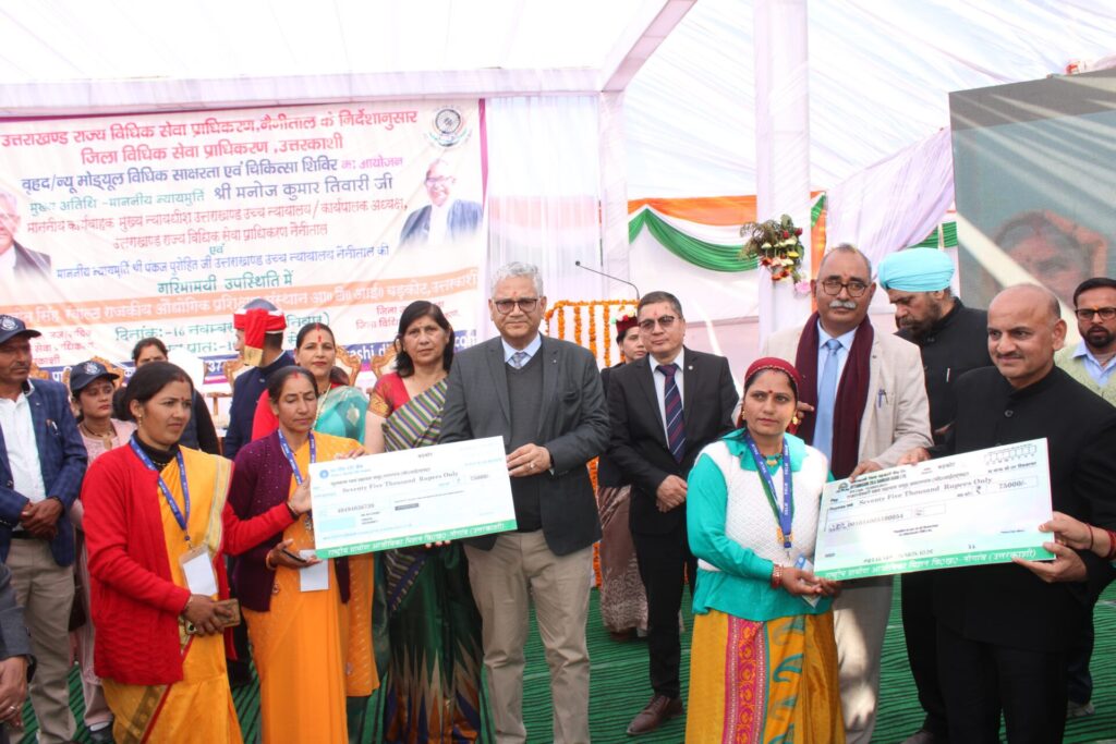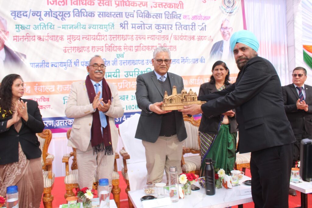 जिला विधिक सेवा प्राधिकरण के तत्वावधान में आईटीआई मैदान बड़कोट में वृहद न्यू मॉड्यूल विधिक साक्षरता एवं बहुद्देश्यीय शिविर का आयोजन किया गया। इस शिविर का शुभारंभ उत्तराखंड उच्च न्यायालय नैनीताल के कार्यकारी मुख्य न्यायाधीश और राज्य विधिक सेवा प्राधिकरण के कार्यकारी अध्यक्ष न्यायमूर्ति श्री मनोज कुमार तिवारी, उत्तराखंड उच्च न्यायालय के न्यायाधीश श्री पंकज पुरोहित, रजिस्ट्रार जनरल सुश्री कहकशा खान, राज्य विधिक सेवा प्राधिकरण के सदस्य सचिव श्री प्रदीप कुमार मणि, जिला जज गुरूबक्श सिंह तथा जिलाधिकारी डॉ. मेहरबान सिंह बिष्ट, श्रीमती मंजू तिवारी ने दीप प्रज्वलित कर किया।