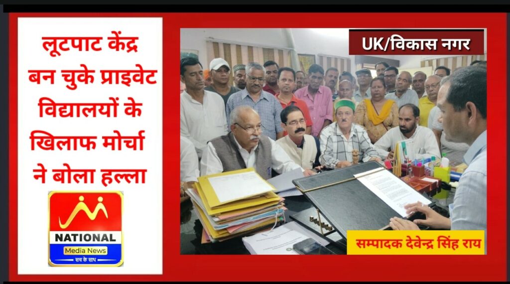 विकास नगर।लूटपाट केंद्र बन चुके प्राइवेट विद्यालयों के खिलाफ मोर्चा ने बोला हल्ला