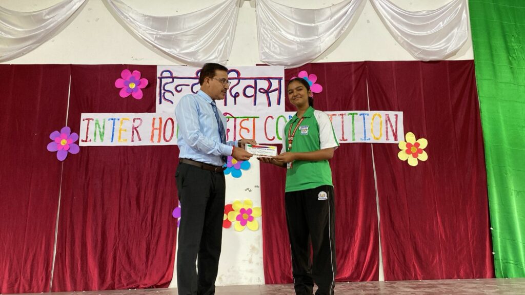 पहचान है। अंग्रेजी भाषा हमारी आवश्यकता हो सकती है परंतु हिंदी भाषा के संवर्धन और संरक्षण से समझोता नहीं हो सकता । साथ ही उन्होंने विद्यार्थियों के बेहतरीन प्रदर्शन के लिए उनका उत्साहवर्धन किया।