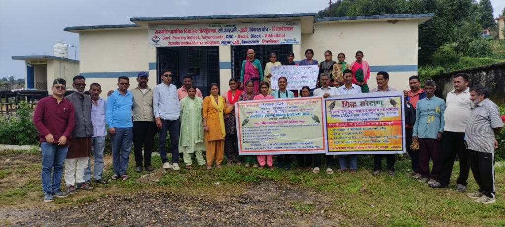 आज दिनांक 7 सितंबर 2024 को गिद्ध मार्ग दुर्गम गांव तोलयूंडांडा रिखणीखाल पौड़ी गढ़वाल में गिद्ध दिवस पर गिद्ध बचाव गोष्ठी का आयोजन किया गया । जिसका मुख्य उद्देश्य गिद्ध को विलुप्त होने से बचना व इनकी संख्या में वृद्धि करना है